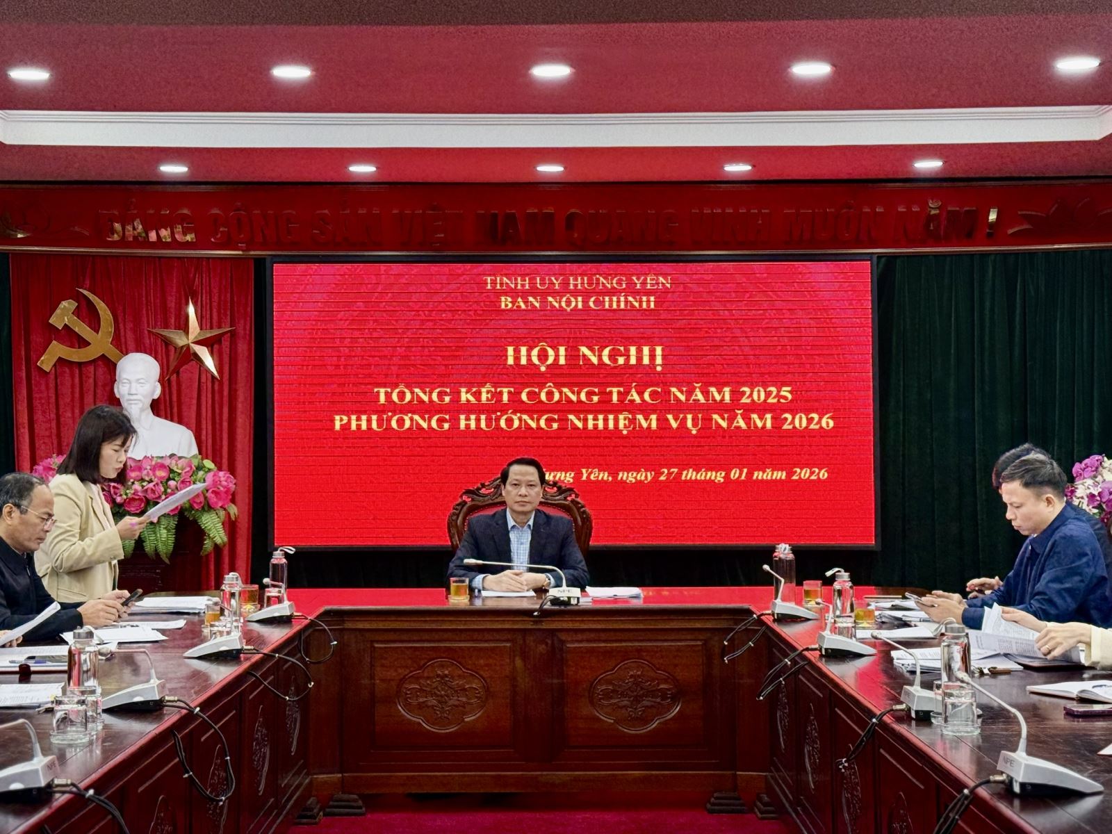 Ngày 27/01/2026, tại Trụ sở làm việc, Ban Nội chính Tỉnh ủy đã tổ chức Hội nghị tổng kết công tác năm 2025, phương hướng nhiệm vụ năm 2026. Đồng chí Hoàng Thái Phúc, Uỷ viên Ban Thường vụ Tỉnh ủy, Trưởng Ban Nội chính Tỉnh ủy dự và chỉ đạo hội nghị, cùng dự có các đồng chí lãnh đạo Ban Nội chính Tỉnh ủy và toàn thể cán bộ, công chức, người lao động cơ quan.
