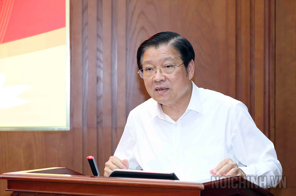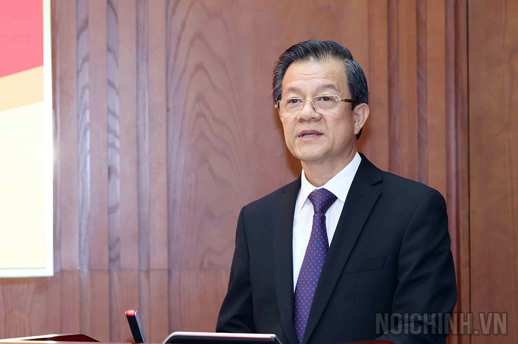 Đồng chí Võ Văn Dũng, Ủy viên Trung ương Đảng, Phó Trưởng ban Thường trực Ban Nội chính Trung ương, Ủy viên Ban Chỉ đạo phát biểu tại Hội nghị