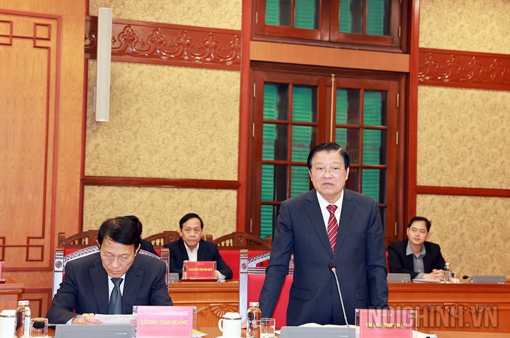 Đồng chí Phan Đình Trạc Ủy viên Bộ Chính trị, Bí thư Trung ương Đảng, Trưởng Ban Nội chính Trung ương, Phó Trưởng ban Thường trực Ban Chỉ đạo Trung ương về phòng, chống tham nhũng, lãng phí, tiêu cực phát biểu