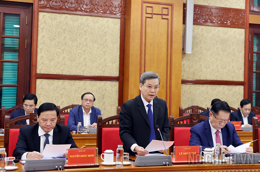 Đồng chí Lê Minh Trí, Bí thư Trung ương Đảng, Phó Trưởng ban Thường trực Ban Nội chính Trung ương, Ủy viên Ban Chỉ đạo trình bày báo cáo tại Phiên họp